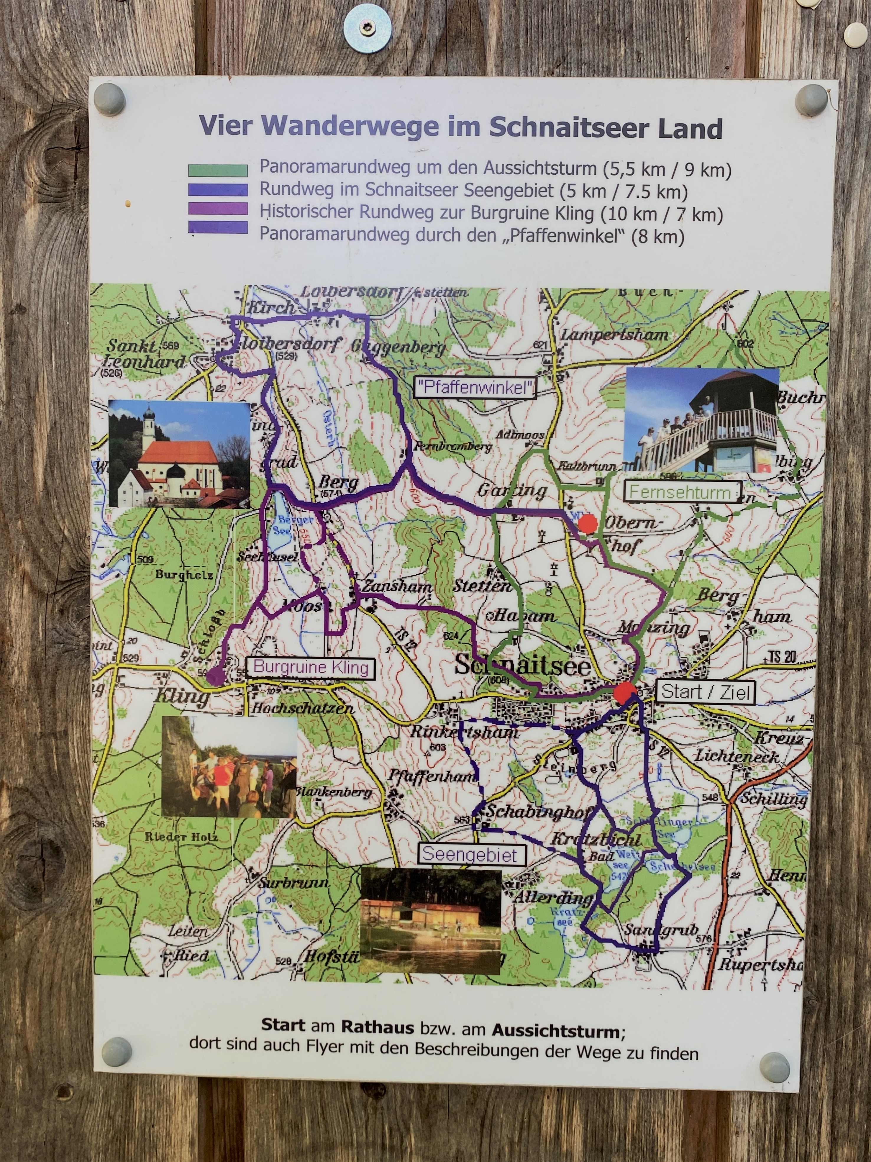 Schnaitsee ist der Ausgangspunkt von zahlreichen Rad- und Wanderwegen. Mit dem Auto erreichen Sie in ca. 15 Minuten den nördlichen Chiemsee (Seebruck) mit den im Süden anliegenden Hausbergen des Chiemgau „Hochfelln“, „Kampenwand“, „Hochries“ und „Wendelstein“. Der Nationalpark Berchtesgadener Land mit dem „Watzmann“ und dem Königssee ist auch bequem zu erreichen.