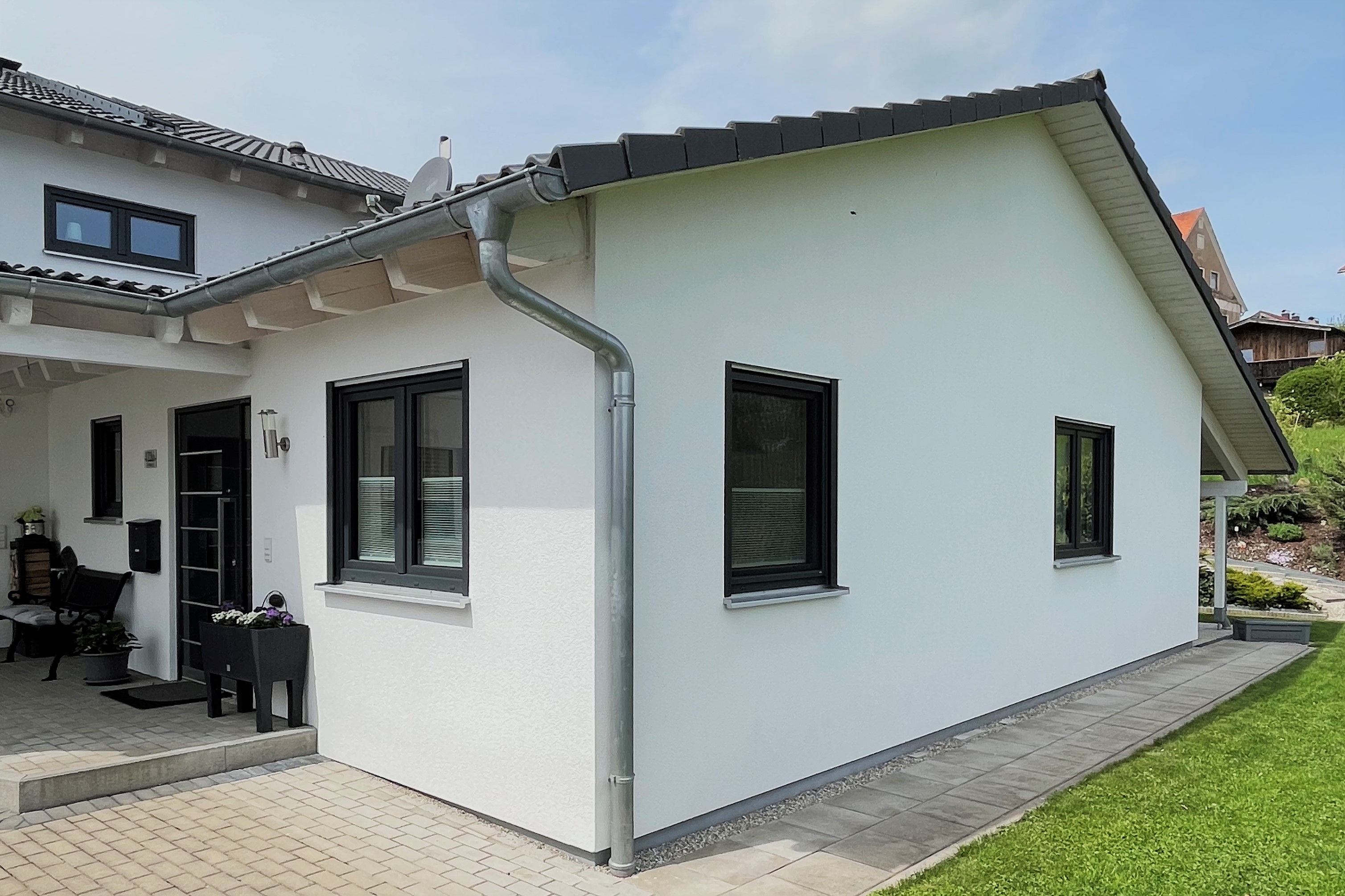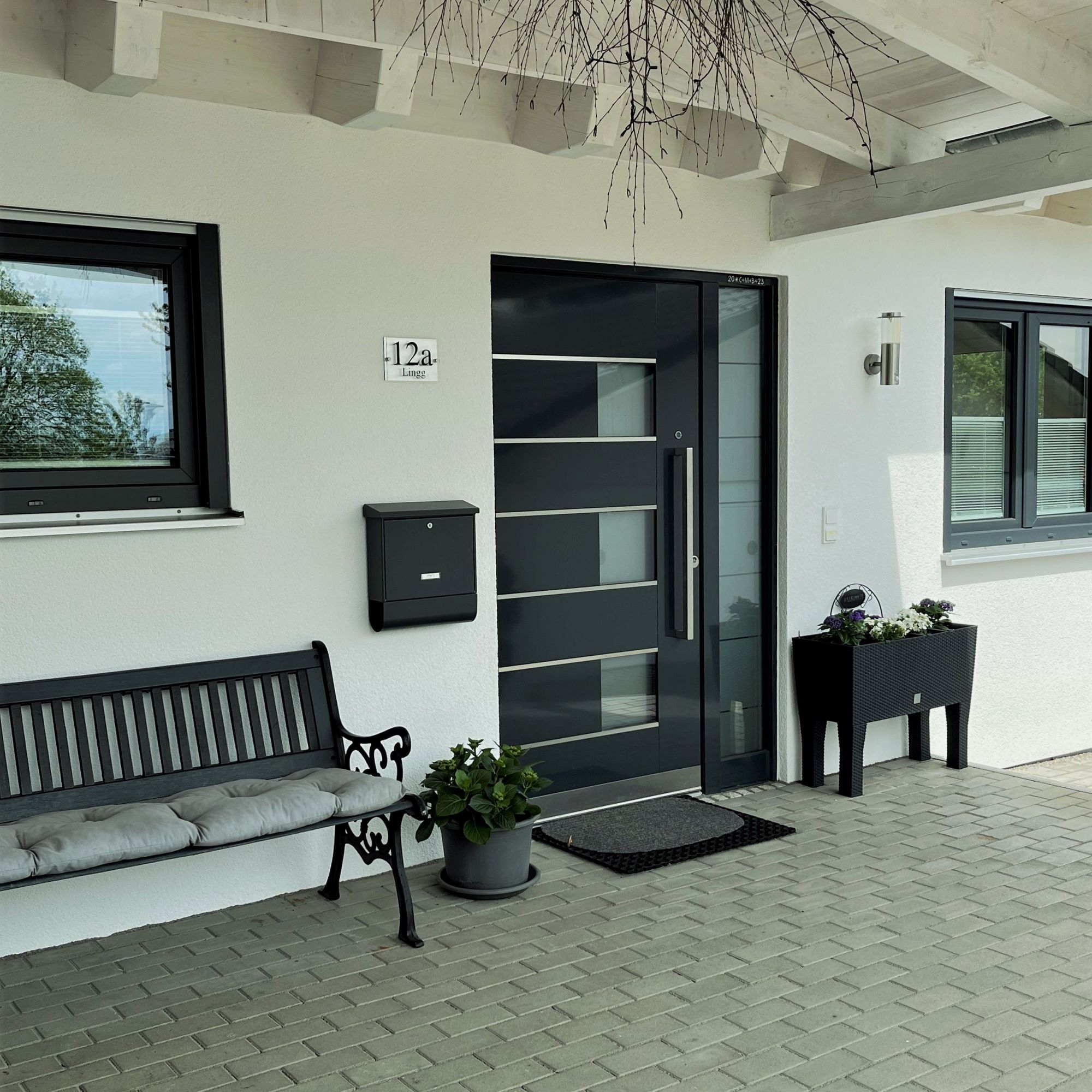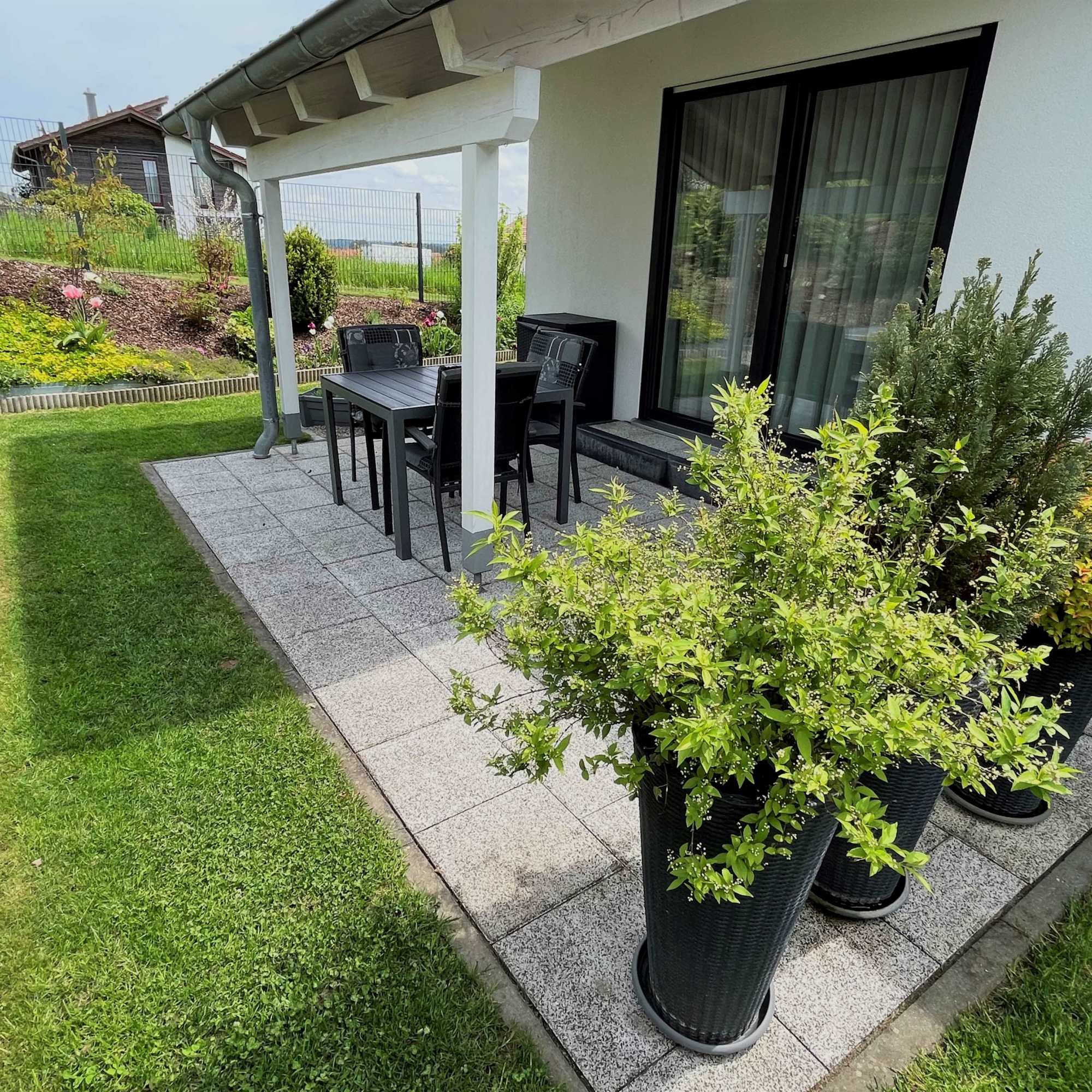 Unsere Ferienwohnung befindet sich ebenerdig in einem eigenständigen Anbau mit eigener Haustüre und toller überdachter Terrasse. Vorhanden sind: Wohnzimmer, ein Schlafzimmer, Küche, Badezimmer und Flur.